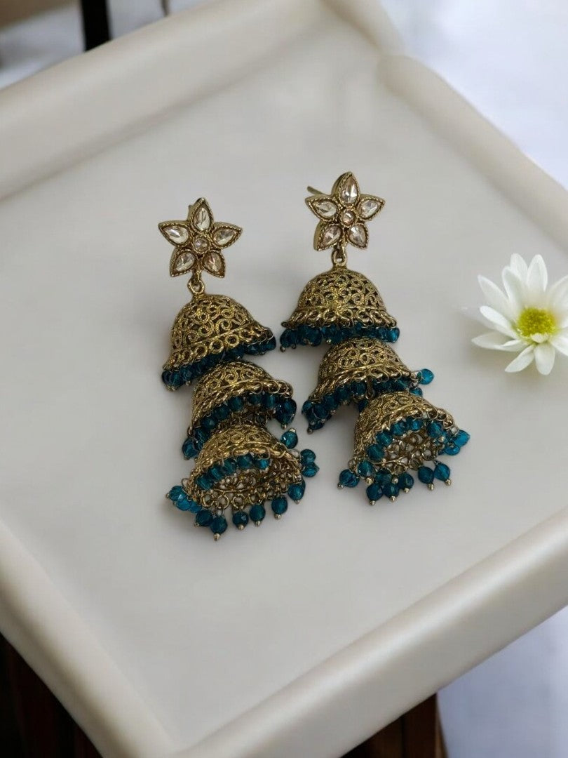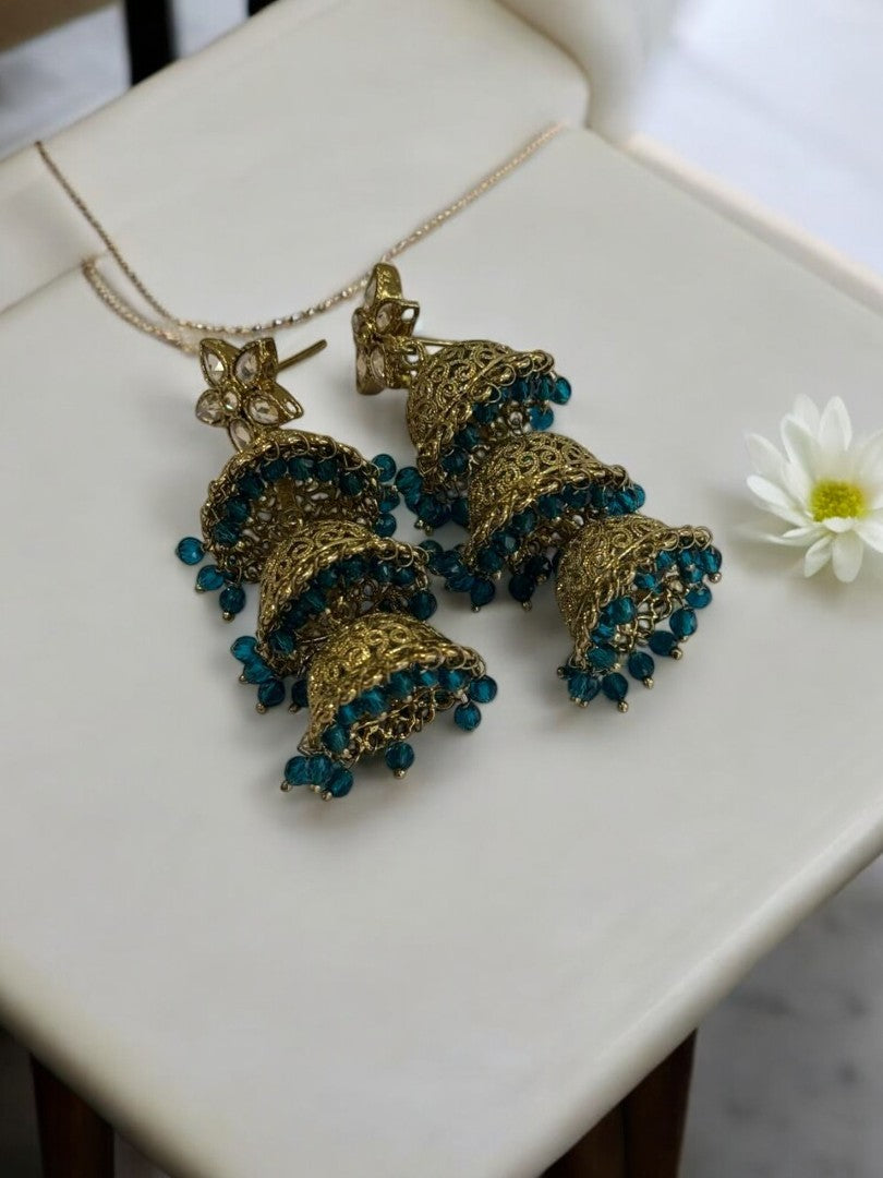 Introducing TATVIKA'S exquisite Blue Vyomeshi Kundan Earrrings: Elevate your ensemble with our exquisite Kundan Dangling earrings, crafted to perfection with a blend of traditional artistry and modern flair. Each piece in our collection is a testament to the timeless beauty and craftsmanship of Kundan jewelry, featuring intricately set gemstones on a radiant gold base. From classic studs to statement chandeliers, our Kundan earrings are designed to captivate and enchant, adding a touch of regal elegance to any look.