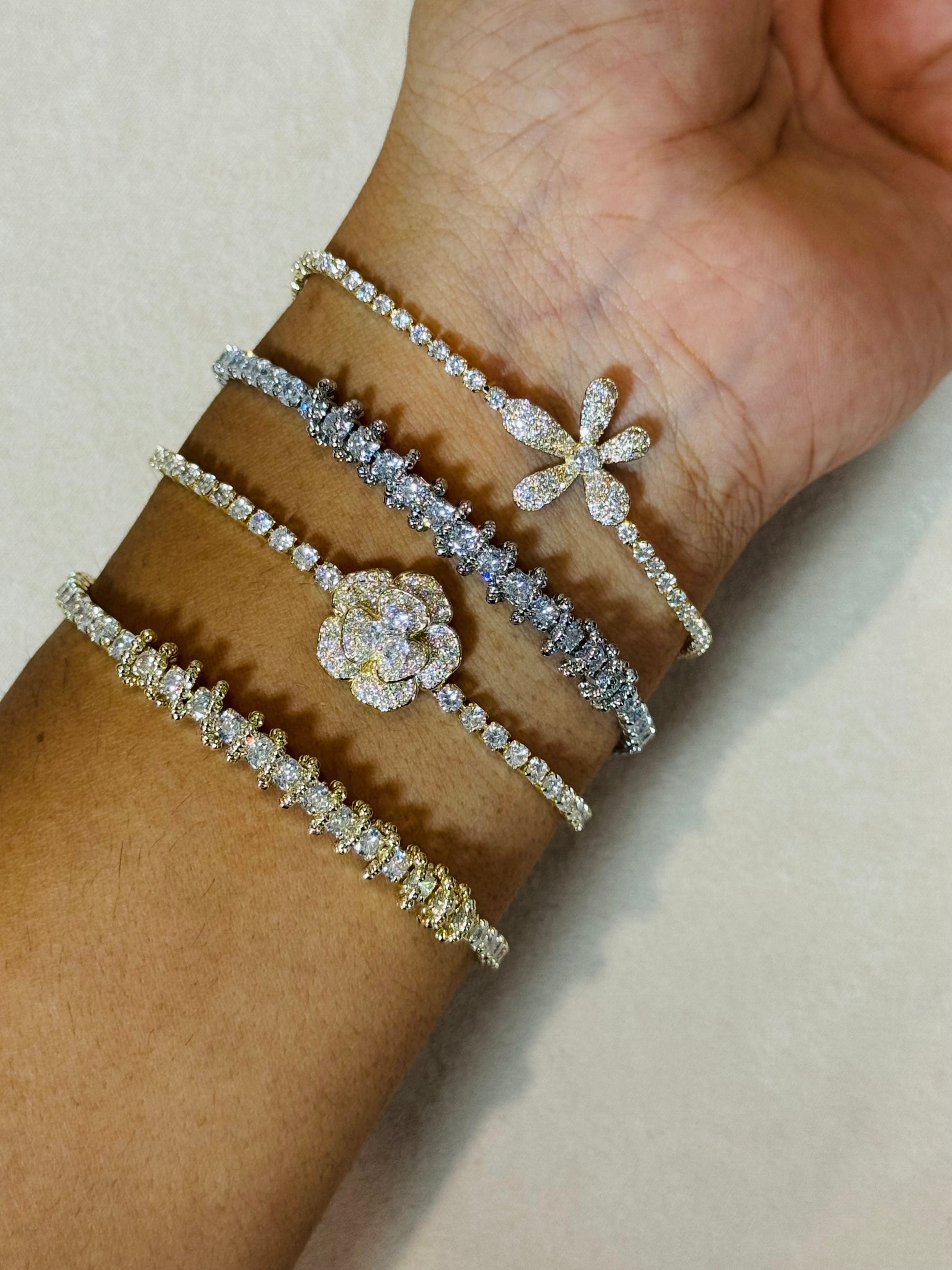 Elevate your everyday look with TATVIKA'S daily wear bracelet, featuring the elegant Golden Diamond Flower Bracelet, Shiny Diamond five petals flower Pull Push Bracelet. Crafted from hypoallergenic and comfortable materials, these bracelets offer sophisticated charm for any event. These bracelets are perfect for stacking, allowing you to layer and create a style that is uniquely yours.