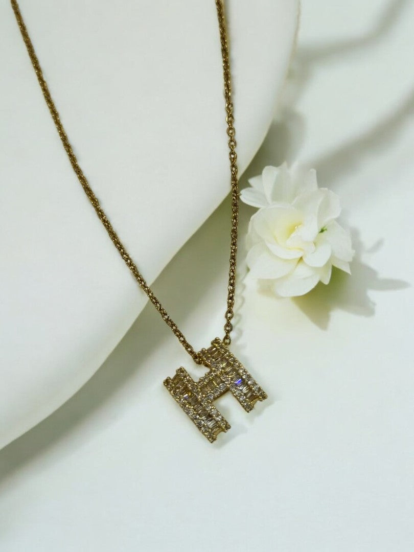 Elevate your style with TATVIKA'S exquisite Golden Diamond H Noelie necklace with beautiful design, Luxurious Diamond Pendent, the perfect blend of elegance and sophistication. Gold Chain Crafted with meticulous attention to detail, this set adds a touch of luxury to any outfit. Ideal for special occasions or as a thoughtful gift, its timeless design ensures it will be a cherished addition to any jewelry collection.
