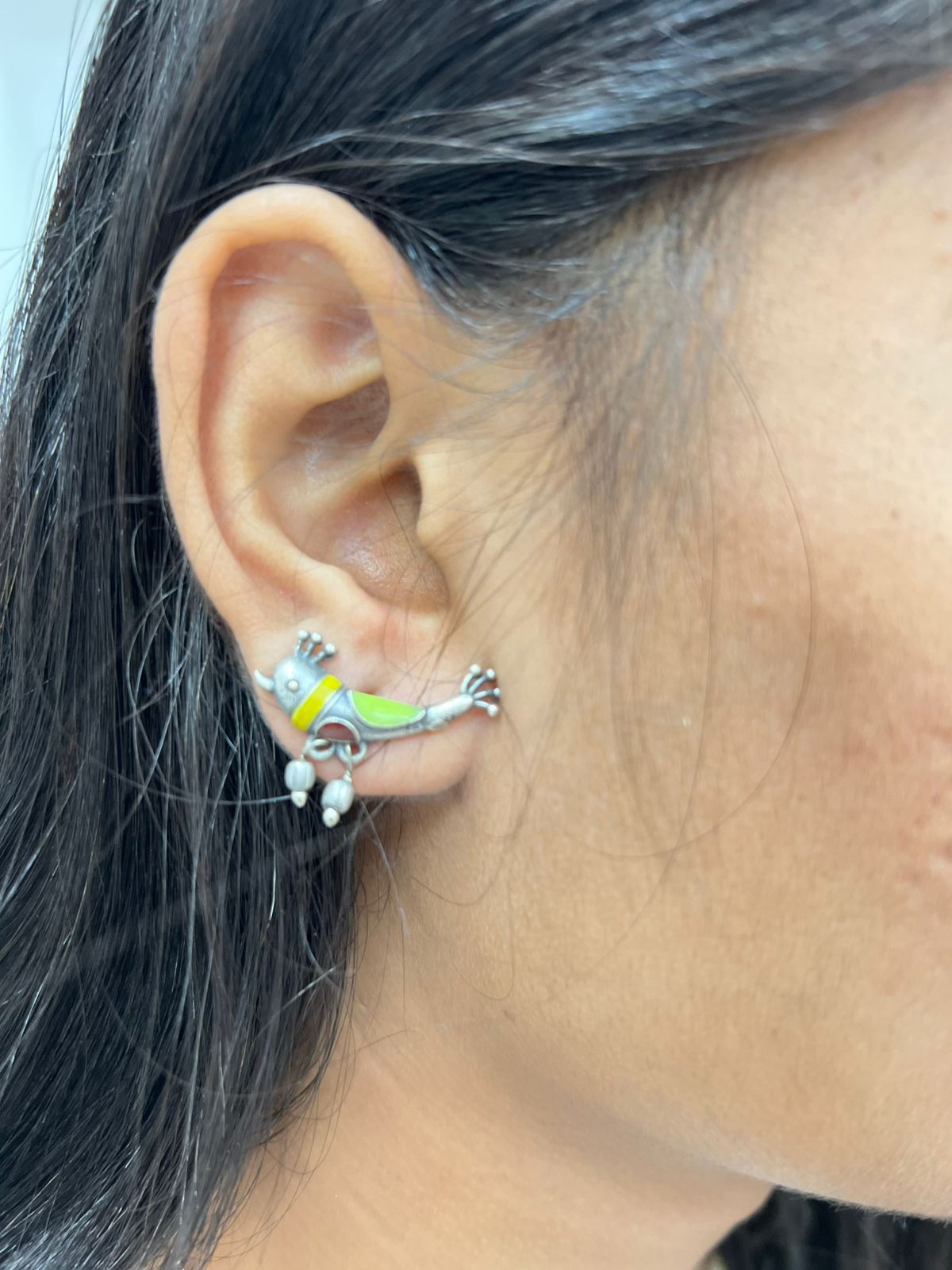 Earring trend in Navratri: Introducing Green Aizal German silver fusion Earrings, Bold and unique, these German silver earrings feature a beautiful blend of oxidized silver designed with delicate green enamel Parrot motifs and antique-finish small jingles Stud. As we approach the vibrant festival of Navratri, the Gujarati Folk Dance. It's the perfect time to explore the latest earring trends that are captivating the Navratri Khelaiya. Each khelaiyas are gravitating towards earrings that not only complement their traditional attire but also showcase their matching with stylish Chaniya choli. Our earrings reflect personal style with a perfect balance of modernity and timeless appeal. Explore TATVIKA’S collection for your ideal statement pair.