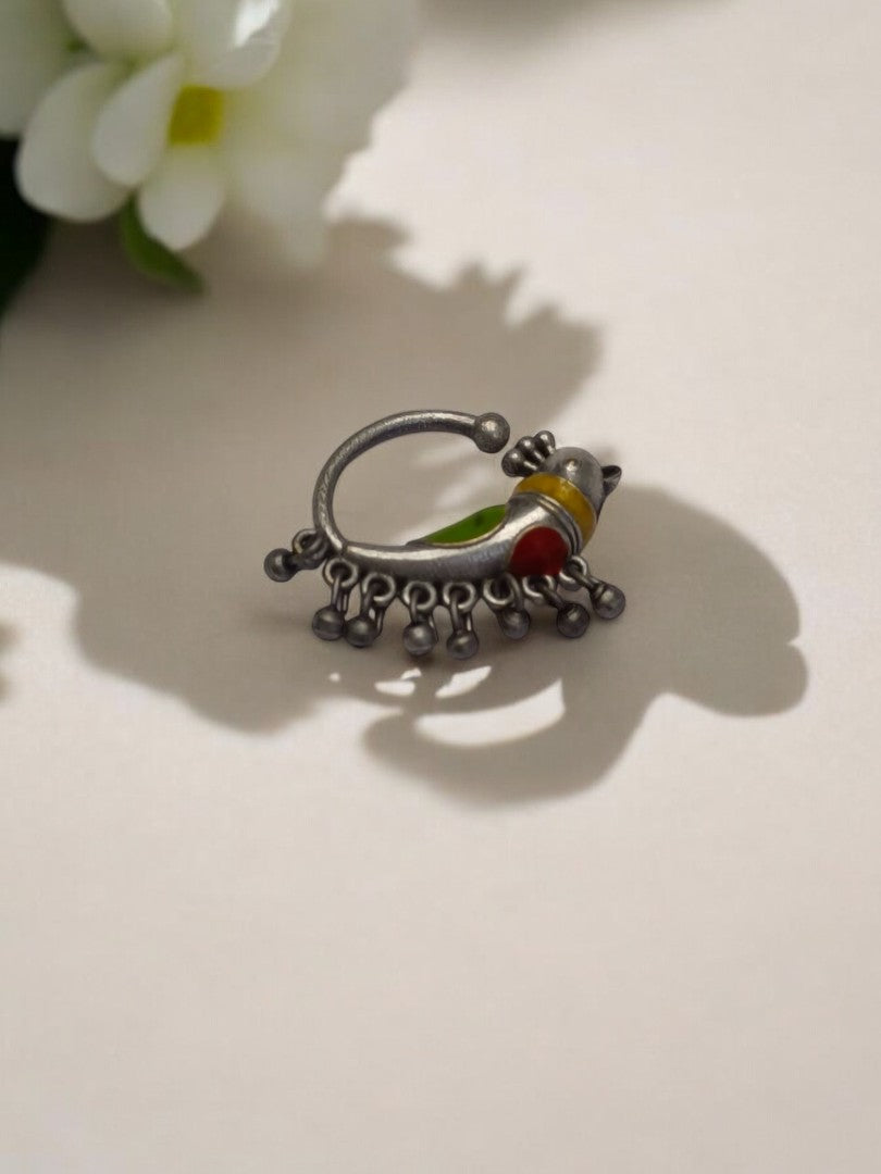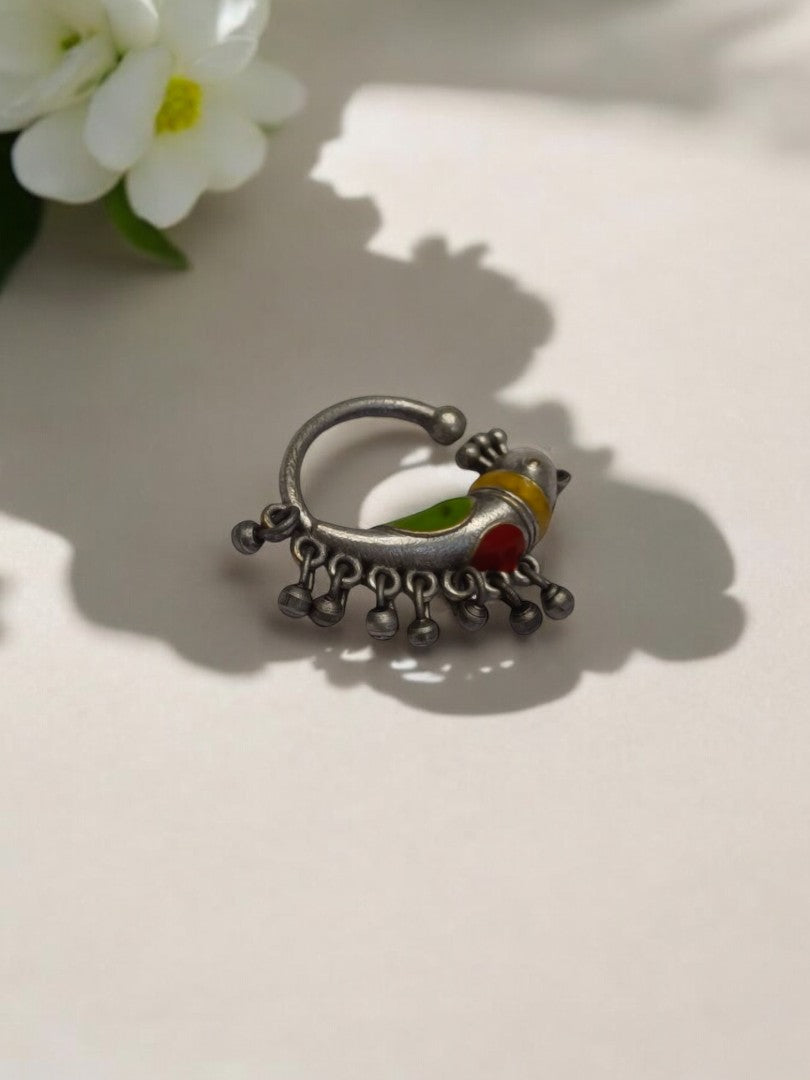 Styling Tips- Wearing fancy German Silver Nose Pin is a long-standing tradition during Garba. Boasting its own unique Festival styles and designs and make a lasting impression.