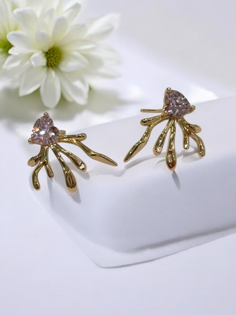 Introducing TATVIKA’S Purple Heart Arian Earrings, A Beautiful diamond Heart stud, where elegance meets nature's allure. Each earring features delicately. Elevate your style with the enchanting allure of our earring. The Warm glow of the Gold enhances their allure, making them a statement accessory for any occasion. Whether you're dressing up for a special event or adding a touch of natural glamour to your everyday look.