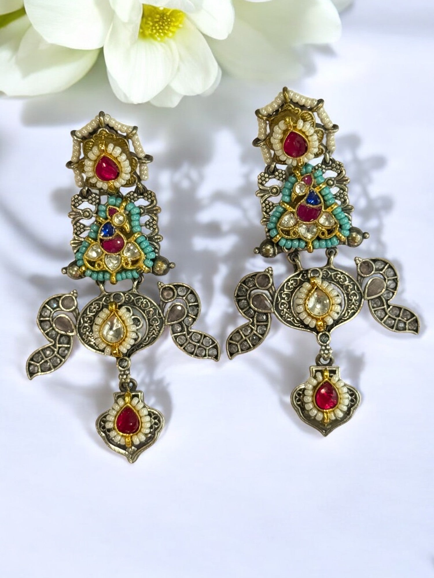 RUBY JANSYA GERMAN SILVER EARRINGS