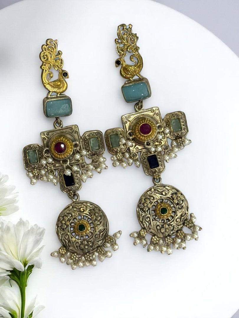 SEA GREEN JOSHIKA GERMAN SILVER EARRINGS