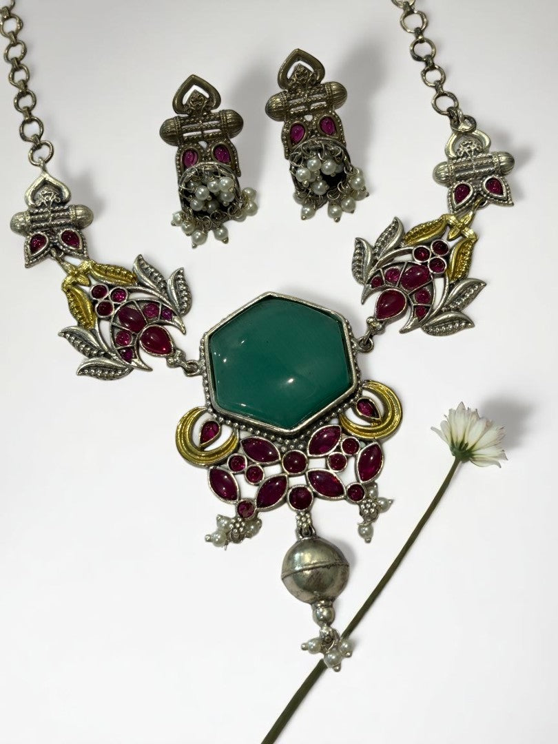 SEA GREEN REKHA GERMAN SILVER JEWELLERY SET